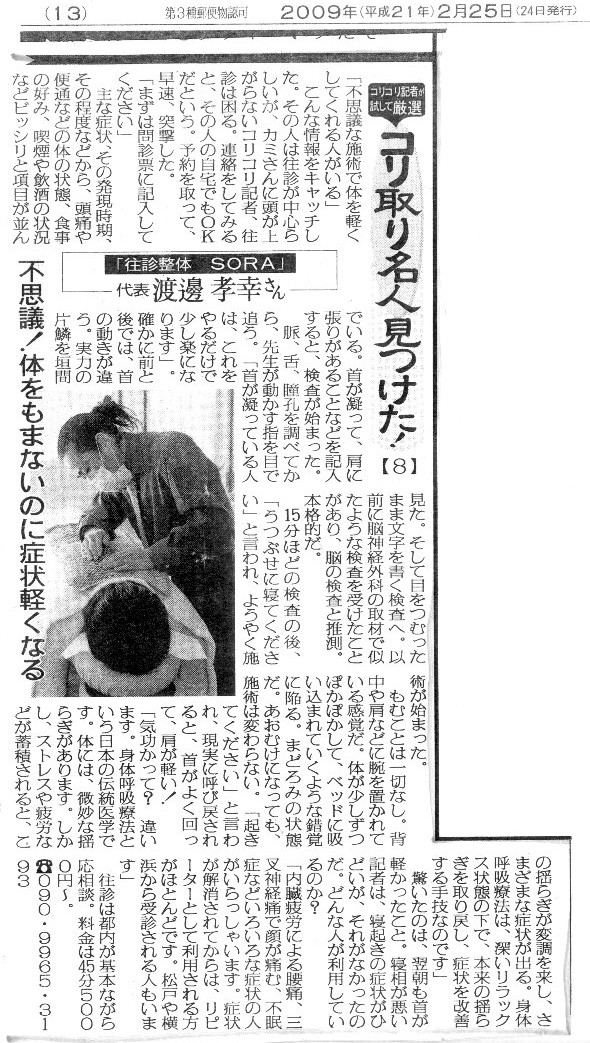 往診整体SORAがその施術と整体講座で伝えたいこと、